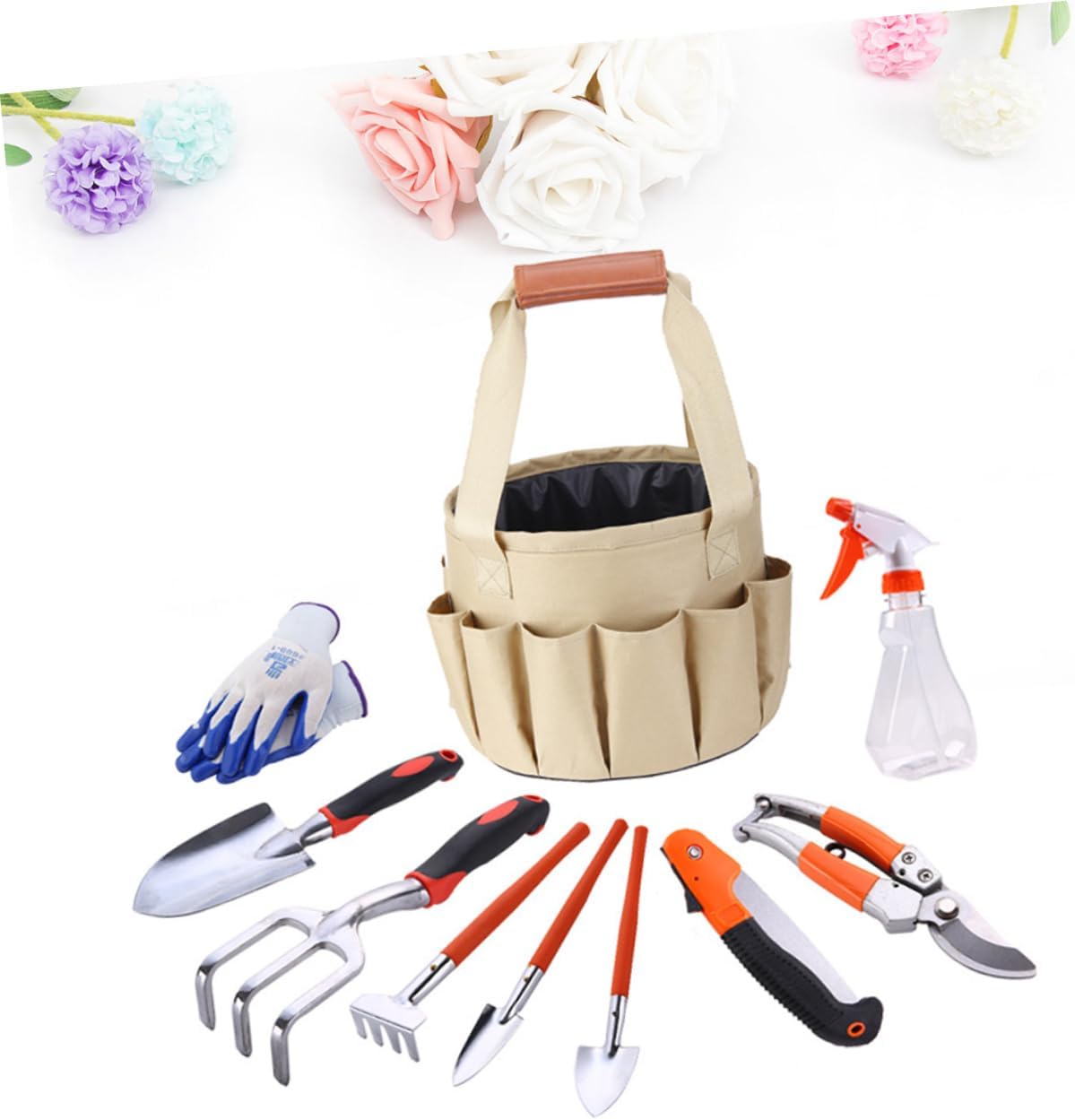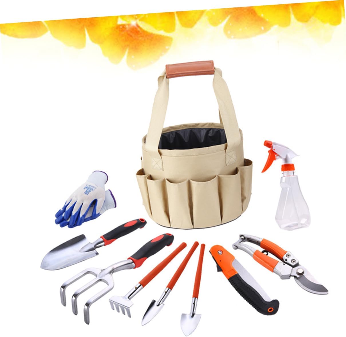 Package Include 10 x Garden Tool Characteristics - Packing Size: About 35 x 18 x 18 cm Gardening Shovel. - Material: Aluminium Alloy and Plastic Garden Tools Set. - Color: Assorted Color. - Beautiful and gardening helper Garden Tools. - No easy deformation, a long period to use Plastic Handle Planting Tool. - Suitable for transplanting , cultivating and weeding flowers and vegetable Gardening Planting Tool. - Easily carry and lightweight design, a gardening lover. - This set includes 1pc bucket bag, 1 pair gloves, 1pc large wide shovel, 1pc large tooth rake, 1pc small tooth rake, 1pc small narrow shovel, 1pc small wide shovel, 1pc hand saw, 1pc pruning shears, 1pc spray bottle. - Made of plastic and metal material, sturdy and .Goods DescriptionGarden Tools Suitable for transplanting , cultivating and weeding flowers and vegetable .Gardening Planting Tool This is a set of 10pcs garden tools, made of plastic and steel material, sturdy and , no easy deformation, a long period to use