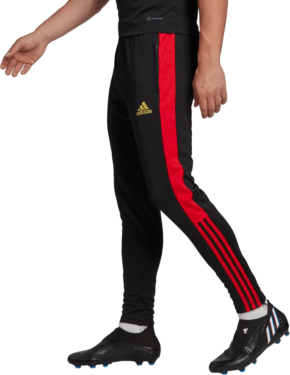 Few players can pair speed, technique and charisma like Mohamed Salah. These adidas soccer pants honor his ability as much as persona. AEROREADY helps keep you dry, whether you're braving the heat outside or pushing through the last minutes of training. Star details on the trim embody his rise to superstardom. The golden crown logo gives the pants a look fit for a king.