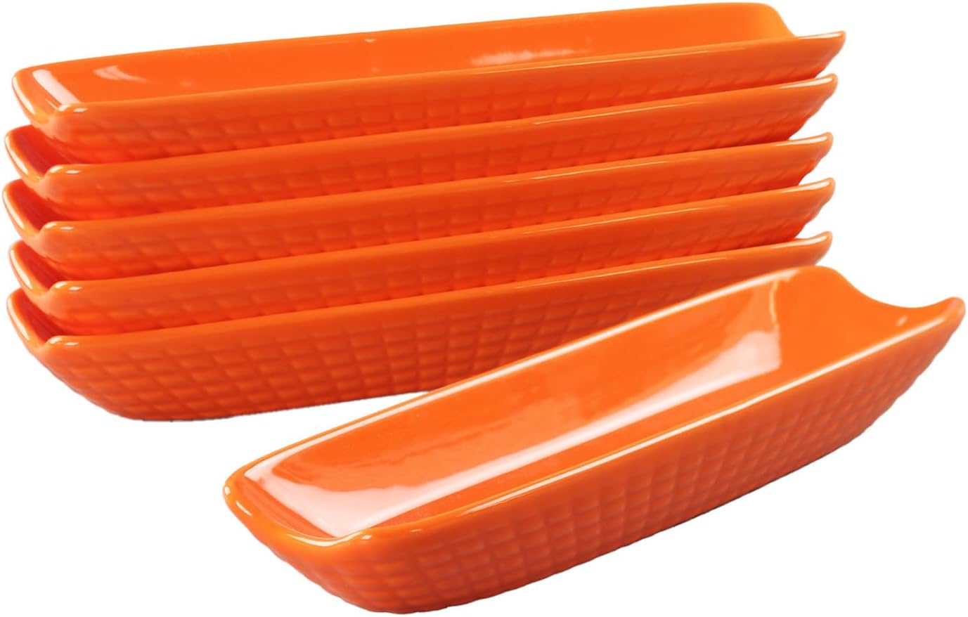 LIUYWYHCF Ceramic Select Corn Cob Holders 9.1 inch Corn Cob Dishes, Set of 6 White Serving plate, for nuts, olives, snacks, cheese, Non-slip Bottom - Microwave Dishwasher Oven Safe Side Dishes High quality ceramic: Thes Serving plate Made of ceramic which is glazed for a beautiful quality piece that will stand the test of time, embossed kernel design along the inside.sturdy, durable, decorative; Each corn dish measures: 9 x 2.6 x 1.2 inches, 6 trays per pack. No Slip Corn On The Cob Tray: Serving plate Oval design, so it doesn't roll or slip off your corn tray when slathered with butter. Ideal for fresh sweet corn, hot dogs, individual dipping sauces, It can not only hold corn cobs, but also nuts, olives, snacks, cheese and side dishes, etc. More fashionable and creative food uses. Reduces Mess: Deep bend, to hold extra large ears of corn securely, accommodates corn holders, re-roll corn in melted butter while keeping your tabletop clean, avoid smearing your knife with butter, simply place butter into the convenient corn boat and swirl the corn to coat evenly across the cob. Easy to use and easy to clean: Corn on the cobb dishes Dishwasher Safe, Easy clean. Designed for corn, but will work great as a small serving plate,great for entertaining, picnics, barbecues and other outdoor activities, parties and for just regular meals at home. Ldeal Gift: Thes Durable and sturdy corn dish, perfect for holding an ear of corn with or without corn holders.Whether you are looking to buy this as a gift for a friend or as a gift for yourself you will love this quality corn dish.