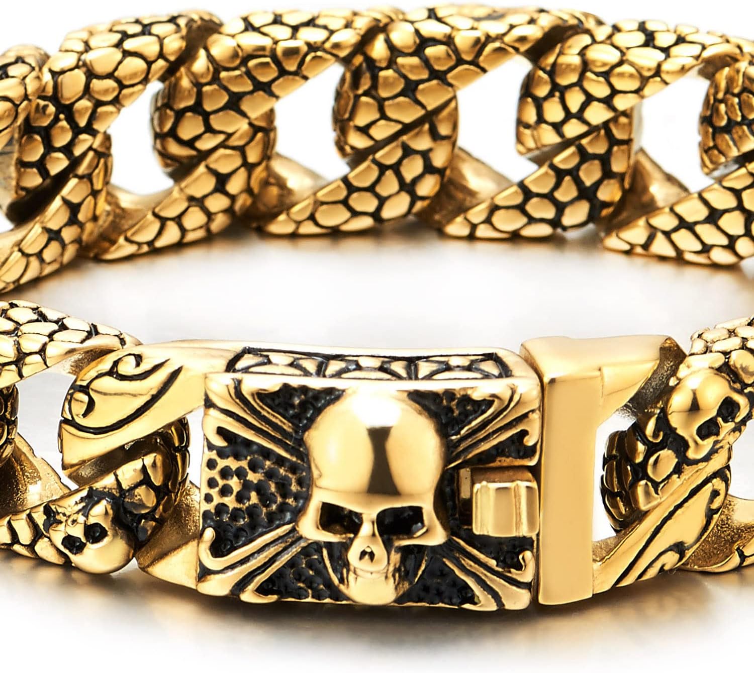 *Condition: 100% brand new*Code: MB-3037*Metal: Stainless Steel*Finishing: Polished and Blackened*Dimension: Chain length: 22CM(8.66"); Chain Width: 1.6CM(0.63")*Weight: 108.3g*Package: Jewelry Box with Brand Name COOLSTEELANDBEYOND