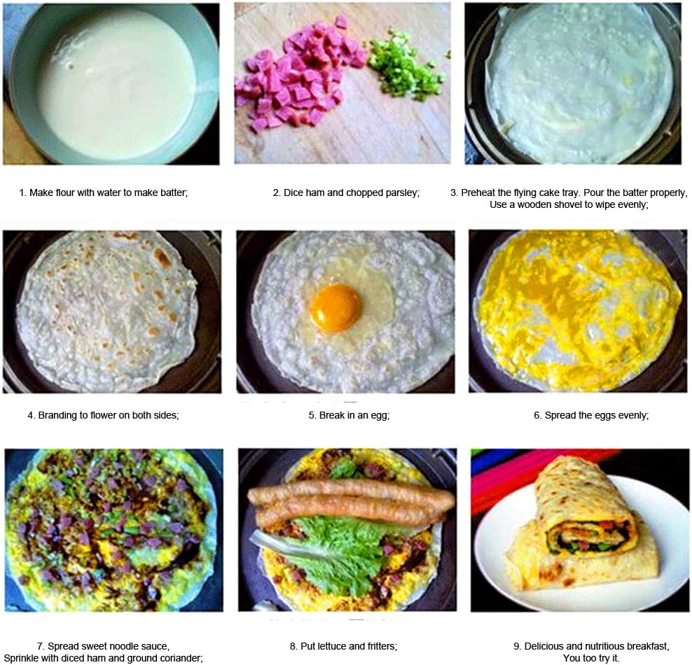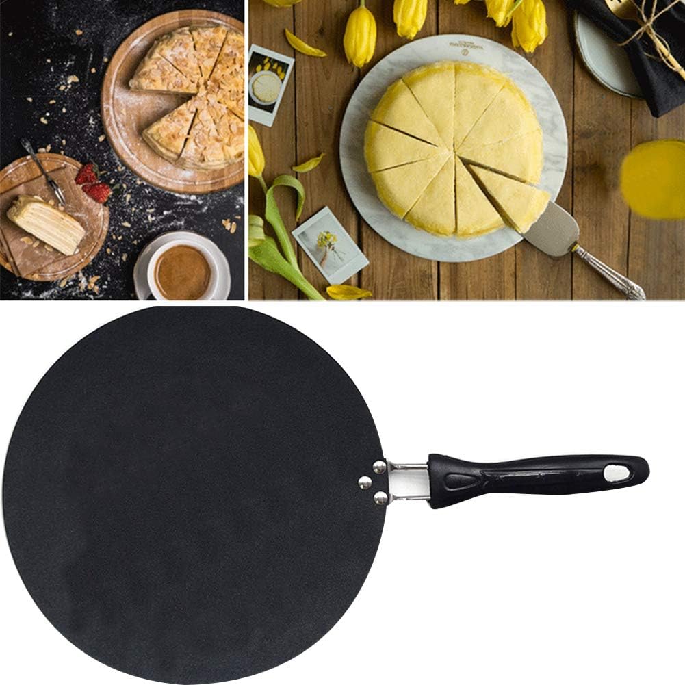 Features:Surface: Cambered surface design, heat uniformity, the pot body in the middle of the thickened and slightly gravure design, not easy to sprinkle outside, heat more uniform smokeless effect is better, and non-stick pan easy to clean.Handle:Bakelite handle, heat insulation and anti-hot, ergonomic design, safety and anti-hot, feel comfortable, can be suspended, easy to wash, worry and durable.Cooking:This pan can be used for making fruit layers, frying eggs, frying bread and shredded cake, etcApplications:For the kitchen commonly used induction cooker, gas stove, electric stove is applicableStrong:Triple screw fixation, farewell to outdated screw technology, rivet chain core stronger.SpecificationMaterial: IronColor: BlackDiameter: About 30 cmDeep: About 0.8mmPackage included:1pc x Pancake PanBefore use:Before using for the first time, please first fill 8 minutes full of water boil, pour away, wipe, and then wipe with a small amount of cooking oil with a napkin.To use:01, it is recommended to use a wooden shovel, chopsticks or non-stick special plastic shovel, general metal shovel is easy to scratch the coating02, in order to extend the service life of the pot, use must pay attention to, do not let the pot empty burning, so as not to damage the pot.If empty burning occurs (in case of high temperature empty burning), please turn off the fire first, and remove the heat source of the pot and put it in the appropriate place to cool naturally, do not use cold water and other external forces to force cooling, so as to avoid damage to the steel body.Notice:Due to the light and screen difference, the item's color may be slightly different from the pictures.Please allow 0.5-2cm differences due to manual measurement.