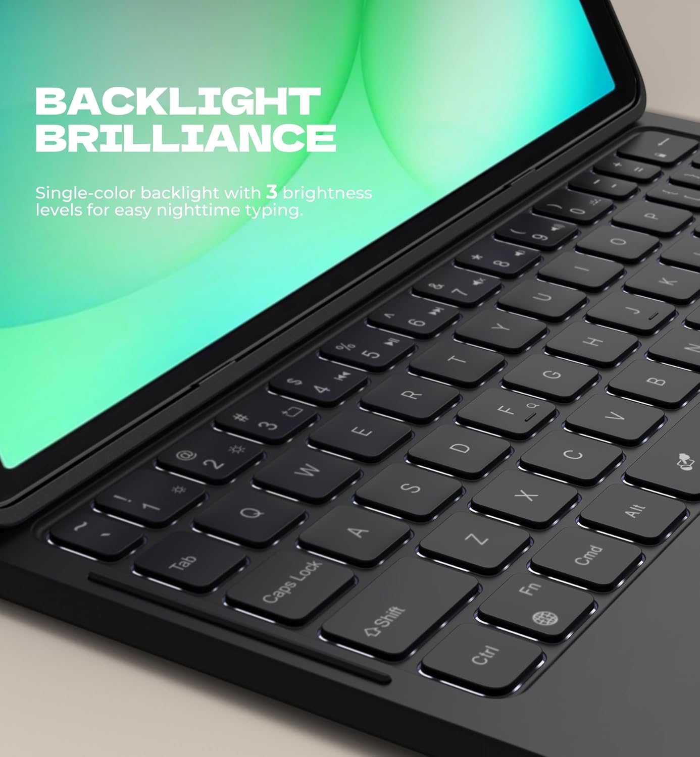 | Additional Features | Backlit keys illuminated typing, Long-lasting rechargeable battery, Auto-wake/sleep, Smart On/Off Design, High precision multi-gesture trackpad, Secure Magnetic clasp with S Pen Holder, Smart Magnetic Keyboard Folio with Rock-solid stability to type on laptop (NOTE: NOT Floating), Ultra-thin slim lightweight portable compact with non-detachable PC case |