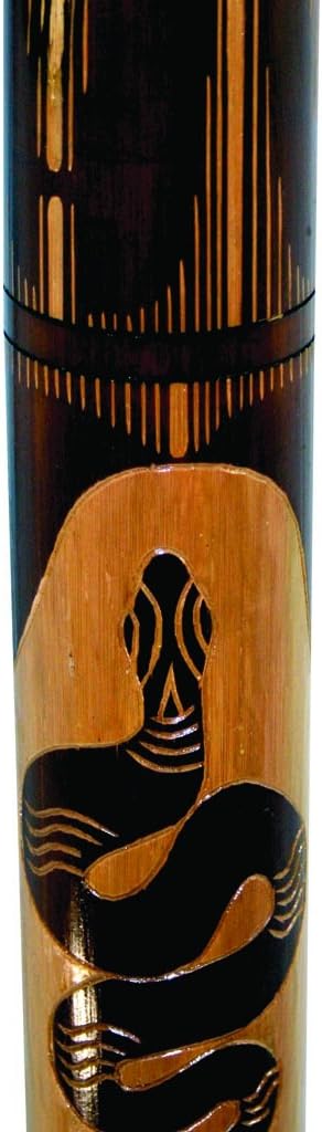 Carved with animal illustrations. The sound of this didgeridoo is powerful and deep with less overtones. The counter - pressure is not very powerful, therefore you need a litte more breath for playing it. Fitting bags and bee wax for the mouthpiece are available in our shop. Length: 47 inch