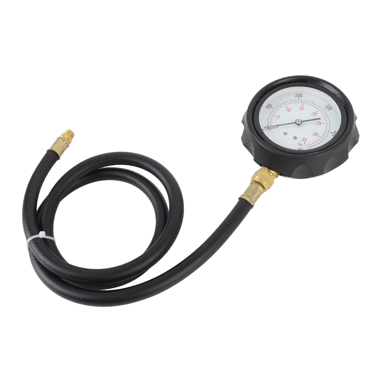Specification: Item Type: Engine Oil Pressure Gauge Pressure: 0-500psi / 0-35bar Dial: 3-1/2in Hose Length: 40in Brass Adapter: 1/8in NPT Adapters Included: 1 x 3/8in NPT Male x 1/8in NPT Female Brass Adapter 1 x 1/8in NPT Female x 1/8in NPT Female Brass Adapter 1 x 1/4in NPT Male x 1/8in NPT Female Brass Adapter 1 x 1/8in NPT Male x 1/8in NPT Male Brass Extension Adapter 1 x 1/4in NPT Male x 1/8in NPT Male Brass Adapter 2 x 1/8in NPT Male x 1/8in NPT Female Brass Adapter(90 Degree Elbow) 2 x 1/8in NPT Male x 1/8in NPT Female Brass Adapter 2 x 1/16in NPT Male x 1/8in NPT Female Brass Adapter Fitment: Suitable for most vehicles with gasoline engine, includes car, motorcycle, ATV, truck and so on How to Use: 1. Remove low oil pressure switch 2. Attach tester using appropriate adapter(s) for the engine 3. Start engine 4. Read the pressure on the gauge 5. Verify vehicle oil pressure is normal against manufacturer's recommendations 6. Remove tester and turn off the engine 7. Replace the low oil pressure switch PackageList: 1 x Engine Oil Pressure Tester Kit (12Pcs) 1 x Instruction Manual 1 x Plastic Box