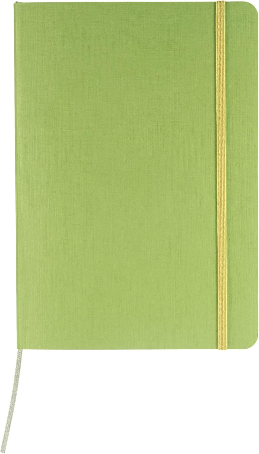 These stitch-bound notebooks are 100% Italian made and have colorful lightfast covers with a canvas-like texture and sewn spines. They contain eco-friendly, FSC certified, chlorine-free and acid-free 24 lb. (90gsm) Bioprima white paper. The notebooks feature a matching elastic band closure, a textile bookmark and a gusseted paper pocket. The belly band identifies the range and describes the product in eight different languages. Available with graph, lined or dotted paper.