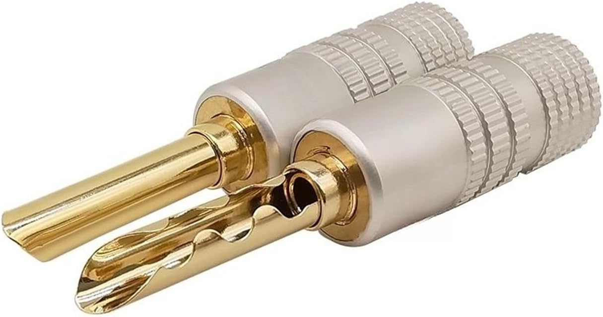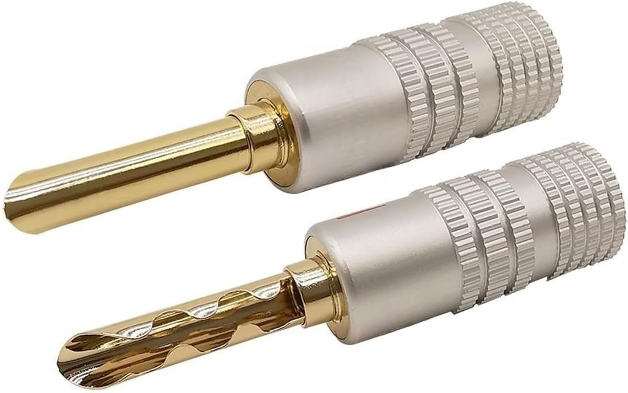 10Pcs Banana Plugs Connectors Serrated Tooth Gold Plated 4mm Bananas Male Sp/ea-ker pl;/ug Screw Locking Wire Cable ConnectorFeature:Sawtooth Banana pl;/ugMaterial: Brass + Aluminum ShellColor: Gold pl;/ug & Silver shellRear entry diameter Appr Ø4mm.Accommodate cable with wire size up to appr 4mm.Double screws locking, no soldering.Package: 10Pcs = 5Pcs Red + 5Pcs Black.