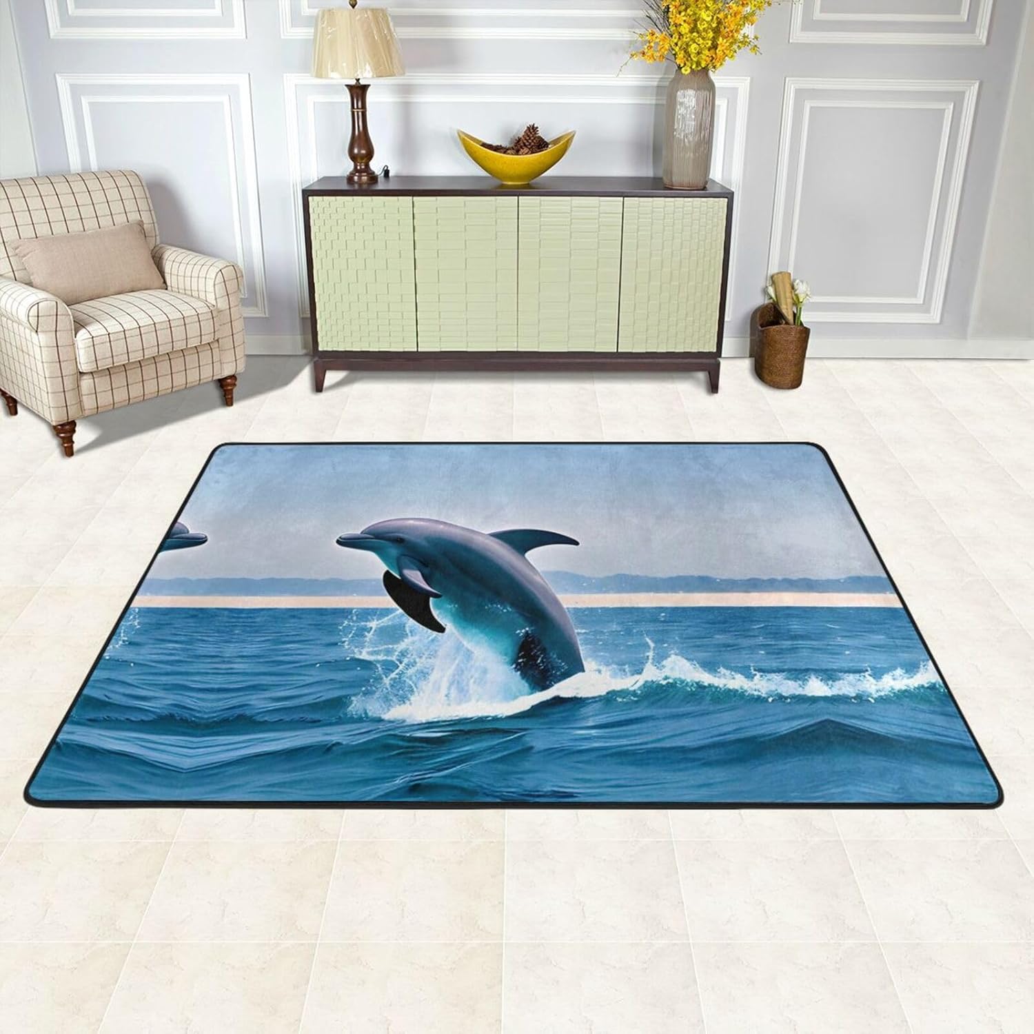 Transform your home with the exquisite WZYWHJ Jumping up dolphins Printed flannel carpet floor mat 36"x24" . Crafted from high-quality flannel fabric (polyester), this carpet boasts a high density space elastic cotton interlayer that is not only absorbent but also incredibly soft to the touch. The delicate fluff texture adds a touch of luxury while ensuring no pilling or fading over time. The innovative middle layer features a high-density memory sponge that effectively relieves foot pressure, making it a comfortable choice for any room. Suitable for a wide range of scenarios including living rooms, offices, coffee tables, beds, and balconies, this carpet floor mat offers versatility and style. The bottom of the mat is made of non-woven fabric and plastic, providing an anti-slip and durable foundation. Easy to clean, wear-resistant, and lint-free, this WZYWHJ carpet is the perfect blend of comfort, functionality, and durability.