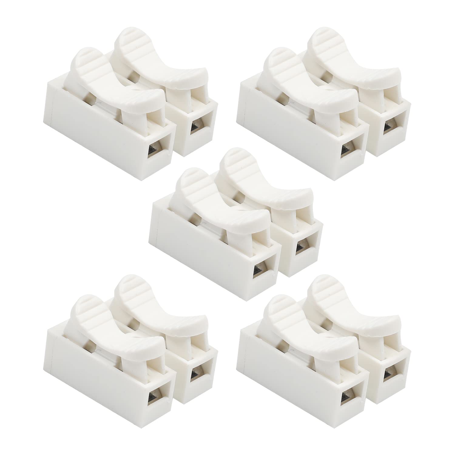 Jutagoss 150 Pcs ZQ-2P Quick Connector Spring Wire Connector Specifications: Model:ZQ-2P Rated Voltage: 250V Rated Current: 6A Main Color: White Poles: 2 Positions Length:30mm/1.18" Width:23mm/0.91" Height:16mm/0.63" Description: 1.Spring loaded press type quick connecting design, connect and play no damage the wire and extra installing tools needed, save time and cost "2.The Spring Terminal Block Widely used in a variety of lamp, decorated lighting, factory and power distribution cabinets, distribution boxes and other transmission equipment. It works pretty good for the small around the house projects like such as wiring for lawn sprinkler, home stereo system… " 3.Using Spring connectors only process 3 steps: Hold down the item and press the terminal, and then put the peeled wires into the terminal, finally loose hands and finish the connection Package Content: Package Content: 150 Pcs x Spring Terminal Block Note: Please allow slight error due to manual measurement,please make sure you do not mind before you bid