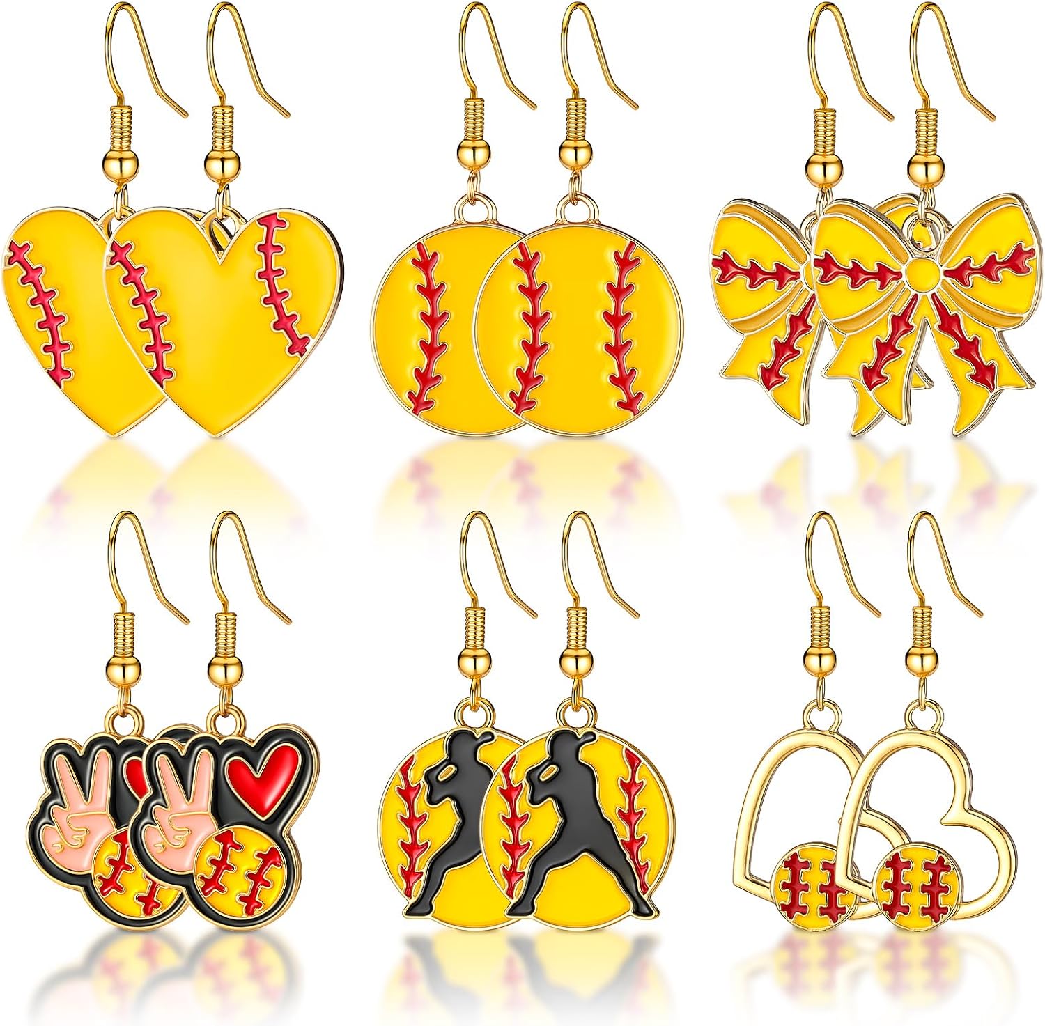 Features: Suitable for most people: Our baseball earrings for women are designed in white, pink, blue and mint color matching, classic and charming, suitable for sharing with friends and adding a touch of style. Various styles to choose: These acrylic baseball earrings are available in 6 different styles, so that you can choose different earrings according to your mood every day. Specifications: Material: acrylic Size: multisize Color: cute color Package includes: 6 Pairs of baseball earrings Notes: Manual measurement, please allow slight errors on size. The color may exist a slight difference due to different screen displays
