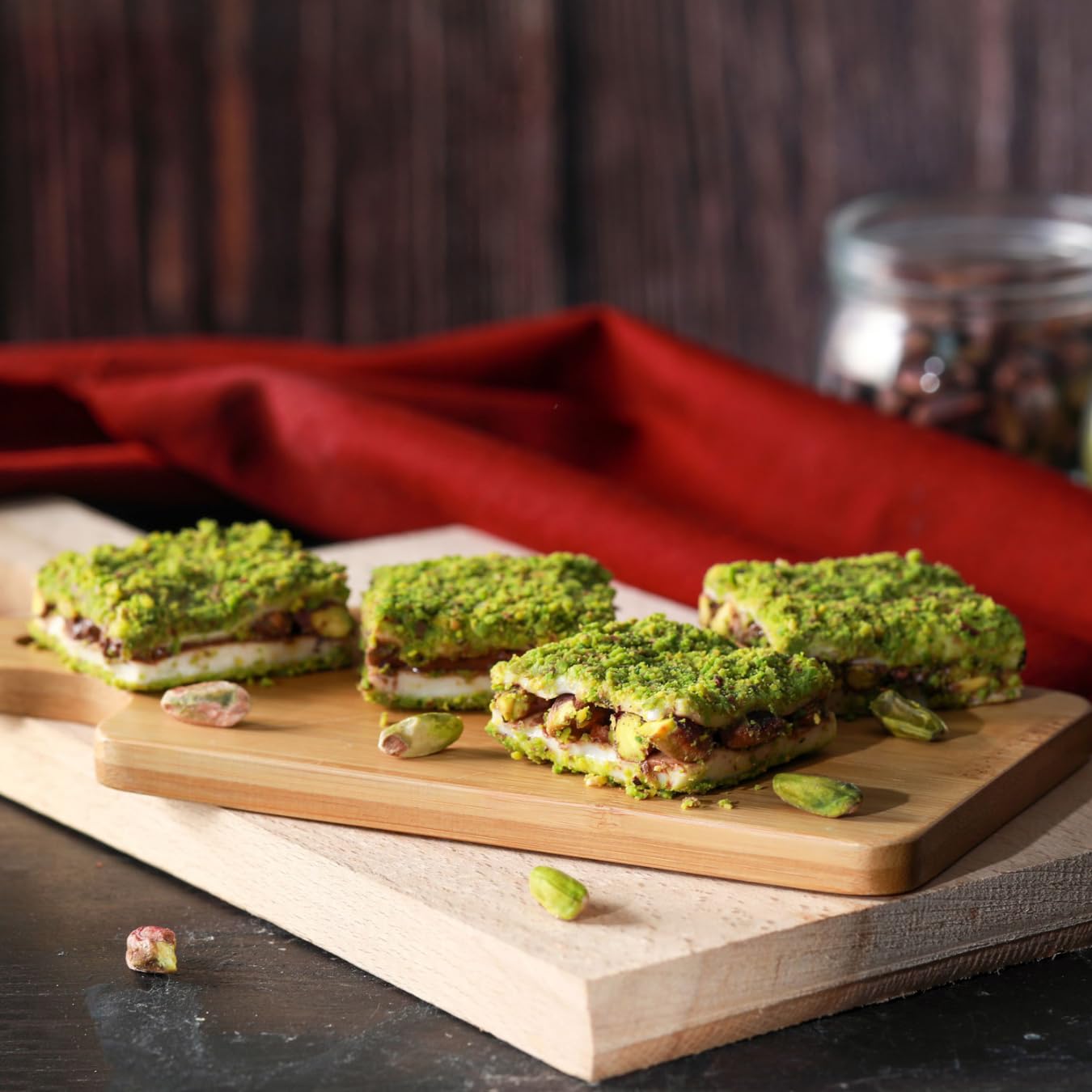 This special Gold gift box contains our boutique-style, inside and out, rich pistachio and chocolate Turkish delights. Our Turkish delights, carefully cooked in small cauldrons, have a unique taste and consistency. Each delight is enriched with quality chocolate and plenty of pistachios. This feast of flavor, which you can offer to your loved ones on special occasions or pamper yourself, offers much more than a sweet getaway. This Turkish delight, which combines elegance and flavor with its gold box, appeals to every palate.