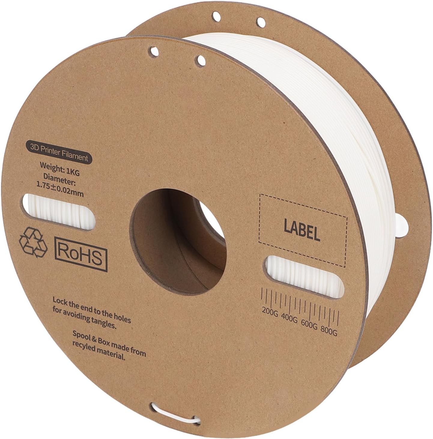 Specification: Item Type: White Filament Material: PLA plastic. Density: 1 g/cm³ Melt flow rate: 8.2 (190°C/216kg) g/10min Tensile strength: 60 MPa Elongation at break: 19% Bending strength: 80 MPa Bending modulus: 2680 MPa Impact resistance of cantilever beam: 3.85 k/m² Thermal deformation temperature: 53 °C (0.45 MPa) Fan: 100 percent Line length: approx. 330-335m/1082.7-1099.1ft Printing temperature: 200-230℃ (220℃ recommended) Bed temperature: 40-60℃ Printing speed: 30-600mm/s How to use: Use directly. Packing list: 1 x 1kg PLA Filament 1.75mm