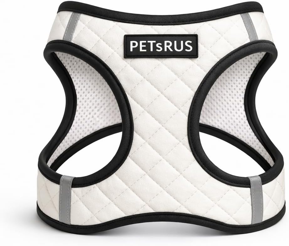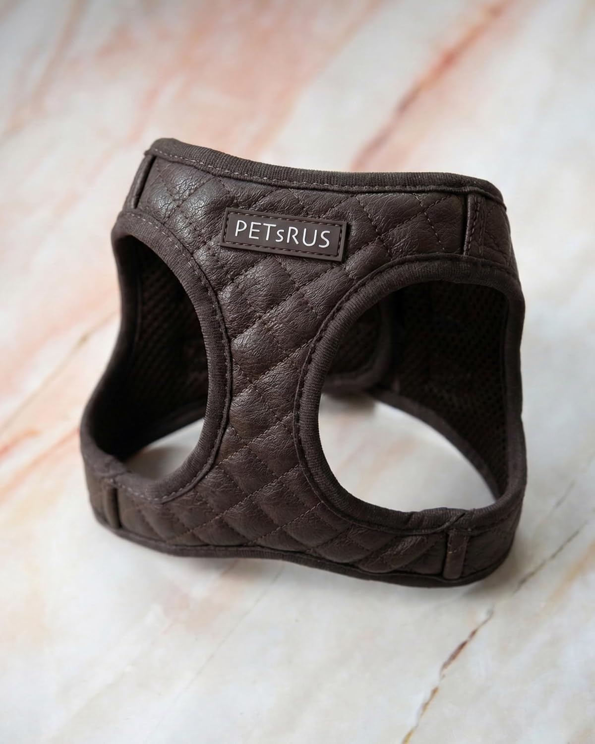 Upgrade Your Daily Walk with a Luxury Step-In Harness Why choose between designer style, ultimate comfort, and reliable safety? Our Premium Step-In Dog Harness is the ultimate walking accessory for pet parents who demand the best. Proudly crafted in the USA, this heavy duty vest takes the stress out of getting ready and keeps your furry best friend completely secure. Effortless & Choke-Free Comfort No more wrestling with your pet! Our intuitive step in harness design lets you gear up in seconds—just step, wrap, buckle, and go. The ergonomic structure safely distributes pressure across the chest rather than the sensitive neck, ensuring a 100% choke free experience that protects their airway. Luxury Meets Everyday Durability Available in stunning aesthetic colors (Black, White, Brown, Taupe) and accented with your choice of heavy-duty Gold or Silver metal D-rings, this harness is a true fashion statement. The exterior features a chic, quilted vegan leather that easily wipes clean. Inside, it is lined with a soft, breathable air mesh to keep your pet cool and ventilated. *Please note: Select color variations feature integrated high-visibility reflective trim for safe nighttime walks. Triple Security Escape-Proof System Your pet's safety is our priority. Our escape proof dog harness features a 3-way secure closure system: 1. Strong, adjustable hook-and-loop wrap for a snug fit 2. Secure heavy-duty quick-release buckle 3. Dual metal D-rings for unbreakable leash attachment Size Guide (Please Measure Neck & Chest): XS: Neck: 8.6" - 11" | Chest: 13" - 14.5" S: Neck: 9.4" - 11.4" | Chest: 14.5" - 17" M: Neck: 10" - 12.5" | Chest: 16" - 18" L: Neck: 12.5" - 14" | Chest: 18" - 21" XL: Neck: 14" - 18" | Chest: 21" - 23" *If your pet is between sizes, we highly recommend sizing up for the best comfort! Click Add to Cart today and treat your pet to the ultimate walking upgrade!