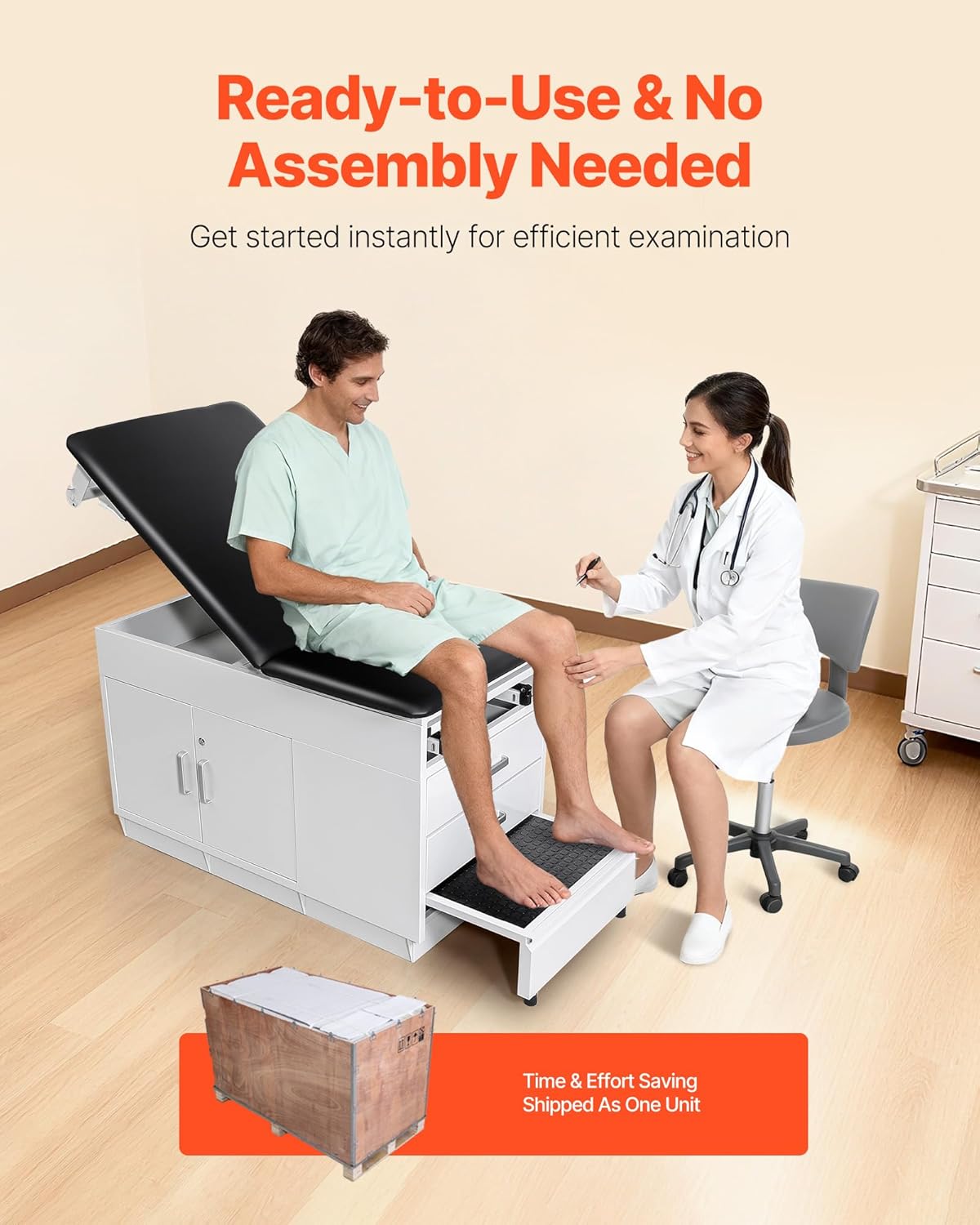 | Item Type Name | Medical Examination Bed with Adjustable Backrest, Physical Therapy Exam Table with Locking Cabinet, 2 Drawers, Paper Roll Dispenser, Step Stool & Leg Rest, 500LBS Loading |