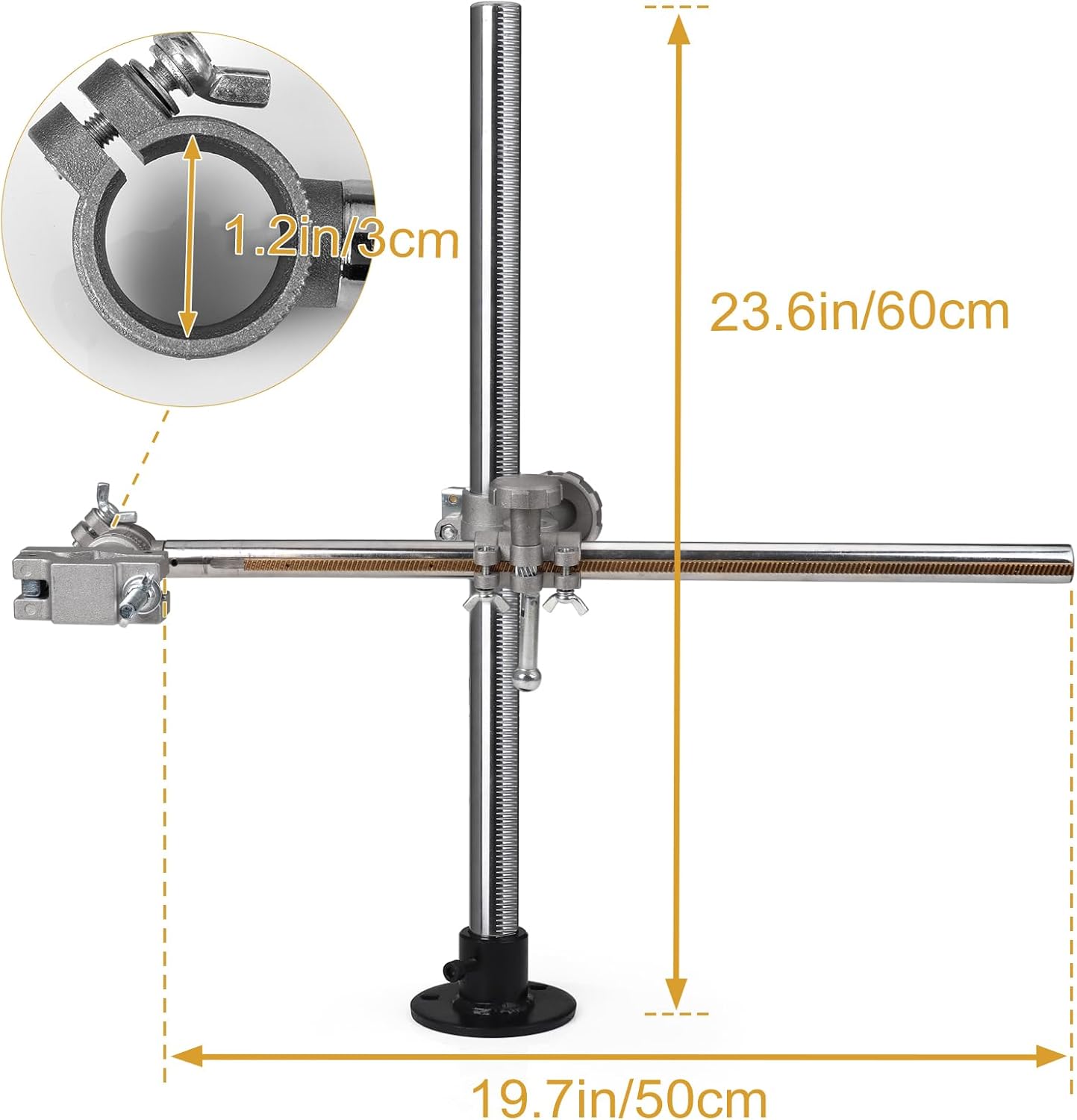 ICZW Welding Torch Holder Support Mig Tig Gun Holder V Clamp Mountings For Welding Positioner Turntable (23.6 * 19.6inch) Size: Vertical bar: 600mm length * ⌀30mm; 23.6*1.18 inches Width bar: 50mm length * ⌀22mm ; 19.6*0.86 inches V-type clamp range: Φ8mm ~ 45mm ; 0.31*1.77 inches [Adjustable stroke] Feature: 1. The width bar is equipped with a rack made of pure copper, and the stroke can be adjusted in the range of 0 to 19.6 inch. 2. Since the torch is stable, there is no shake and a uniform weld bead can be obtained. 3. Suitable for use in welding positioners and cutting machines, improves work efficiency and welding quality, achieves fixed welding torch, and enables semi-automatic welding.